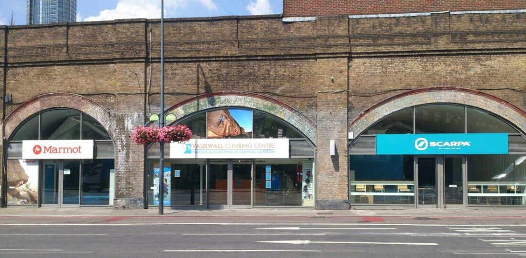 The Vauxhall climbing wall or Vauxwall is situated in the railway tunnels underneath Vauxhall train station as was formerly a restaurant amongst other things.