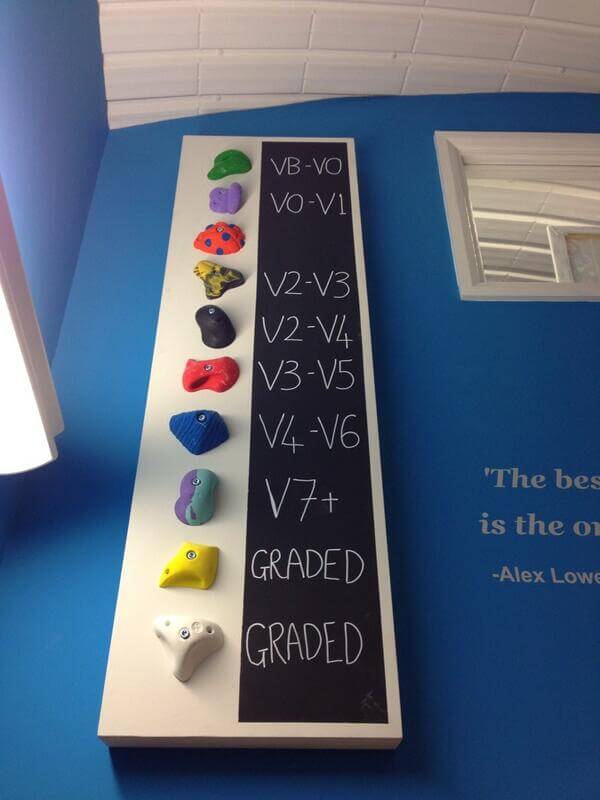 The standout thing for me about this wall is the grading and colors of the holds used. Other walls use the very similar color holds for all routes from V0 to V5 (red, pink, orange, brown and flesh, etc), this is a huge problem for me (and I guess others) who are color blind to the red side of the spectrum as every hold on the wall looks exactly the same. Whereas here the colors were all very different and clearly marked all the way up. Also V1 route were actually V1’s not V5’s in disguise.
