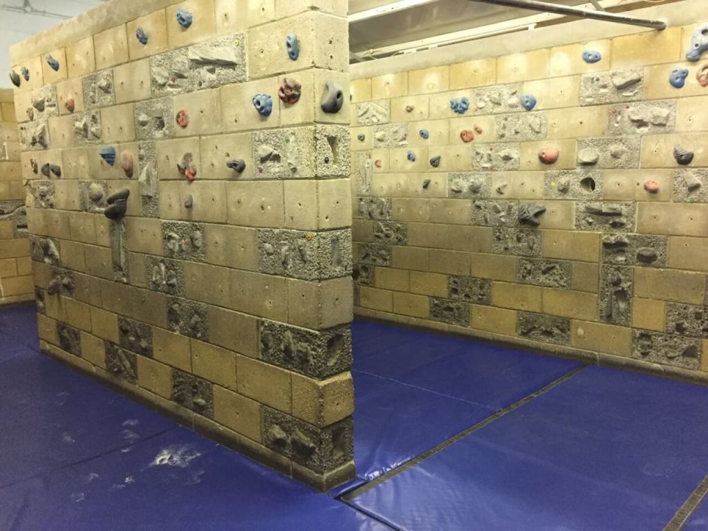 Opposite the counter there is the Peggy Day wall, An Endless Traverse wall and a steep panel wall to warm up on, there are also mats to stretch on.