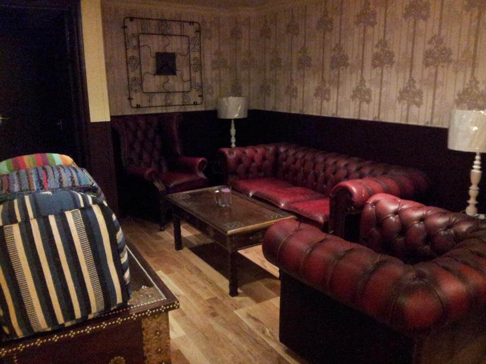 Inside you will find the counter that proves that is was indeed at one time a cafe or kebab shop, the glass counter and overhead blackboards with prices, typical of the fast food restaurants. But past this there are plenty of seats with a prime area of leather sofas and random nick-knacks.