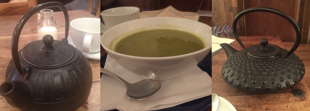 The menu is vast and caters for every dietary need it seems, as well as smoothies, coffees and teas at descent prices. She has had Soup (the daily special of Leek and Potato), we have had sandwiches and of course cake!. With varying degrees of success, namely the soup was weird and bitty – the leeks weren’t blended enough, the sandwiches were pretty good, but the cake was pre-made and pretty dry.