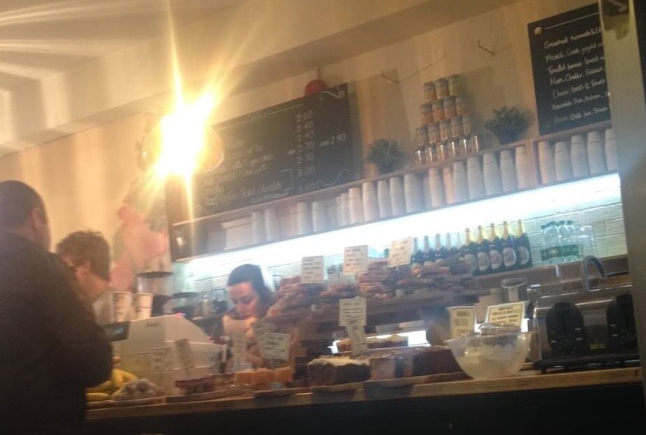 We were greeted by more puns than you could throw a stick at.Like Feta Together, Big Advogoat and Lock, Stock and Smoked Salmon and with a real selection of vegetarian sandwiches and bagels too.I was in heaven. We ordered two mochas and took our sandwiches (Ariba Fajita and Vegan Project)and sat in a little booth.