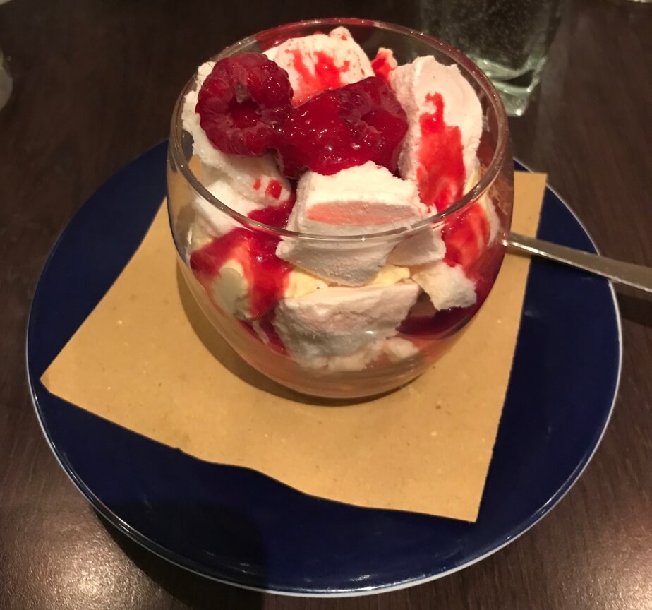 Bob – I love! love! love! This desert.  Meringue with a passion fruit cream, fresh raspberries and a raspberry coulis. My gosh its yum! The right amount of sweet and sour all in one.