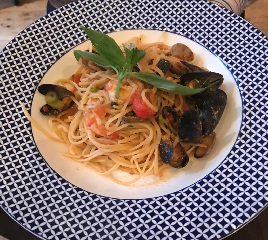 Ash – I had the Seafood Linguine – I always like a good Linguine, it’s a shame this wasn’t a good Linguine! It lacked much flavour, there wasn’t a lot of seafood (a lot of mussel shells mostly) and a pretty small portion, the dish (seen above) is mostly that check pattern, the actual bowl wasn’t as big as my hand.