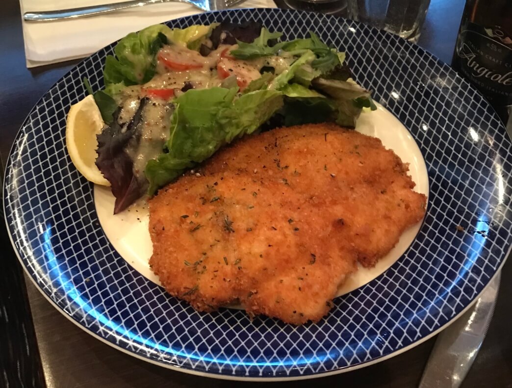 Bruffin -Chicken Milanese – The dish on a whole was quite dry but tasty, however he persuaded me to have a side of potatoes which I didn’t really want and found at the end of the meal I was charged for it.