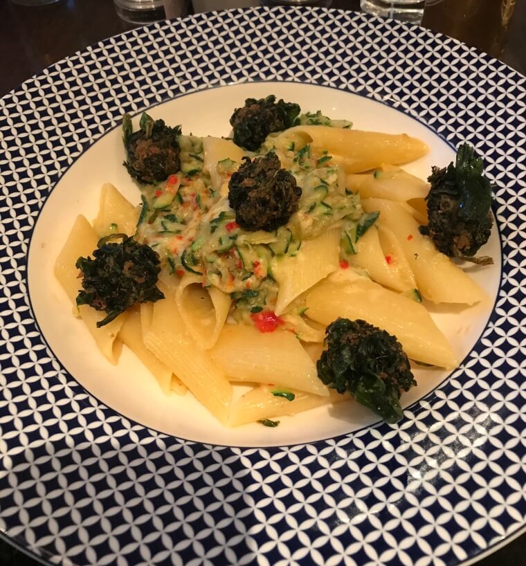 Bob – There wasn’t really much of a choice for me due to allergies etc but I had my usual – Penne Giardiniera – A pasta with crispy spinach and chilli and courgette (Though I am allergic to courgette) It is always tasty, the spinach balls are what make it truly memorable though!