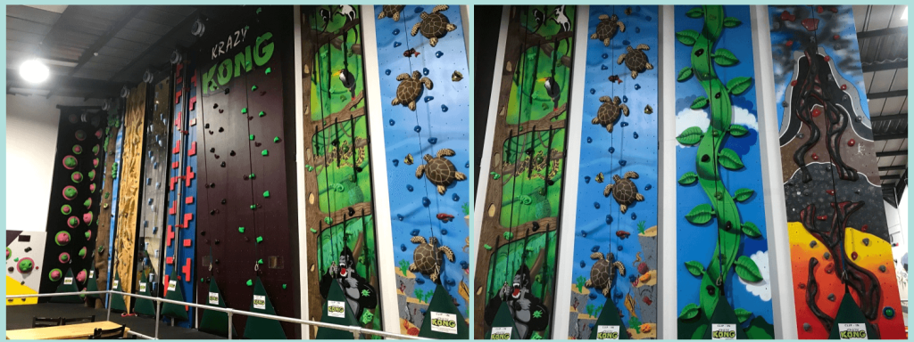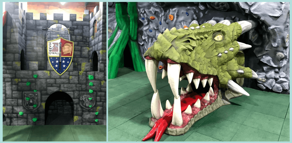 But probably the best bit of the entire place is not even for the likes of us. No the best bit is the kids section – just because we are taller, doesn’t mean we don’t want to climb the walls of a castle, or a Tetris wall, A Dinosaur Wall or run across a rope bridge and down a pole when we are finished a route.