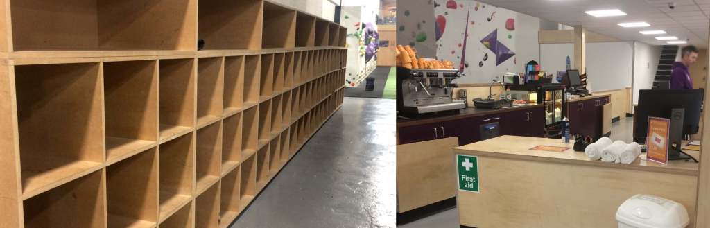 We came down and started to climb, simple, basic routes, to get started and was immediately impressed, the routes were consistent, V1’s were V1’s V4’s were for all about the same grade, none of the usual problem, of a V1 is all big jugs, the a V3 is all crimps and tiny holds. V5’s are all slopers. No Harrow’s route setters have done the impossible, they have set, laybacks, crimpy routes, slopers and bridge routes all in the grade and not just in one grade, but in all grades AND shockingly, they also didn’t put red routes next to orange routes, so the colour-blinded of us weren’t confused.