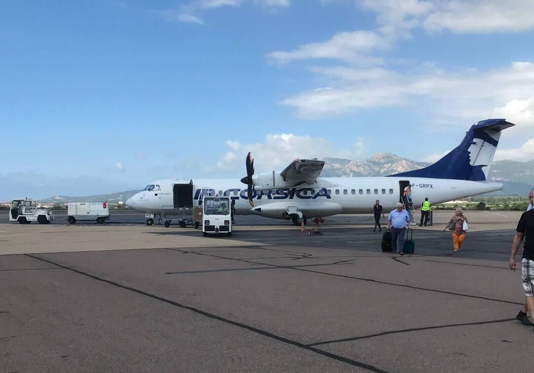 Another flight, this time on the a tiny A320 Airbus and just enough time for the cabin crew to sell a quick drink in the aisle and we land at Calvi Airport.