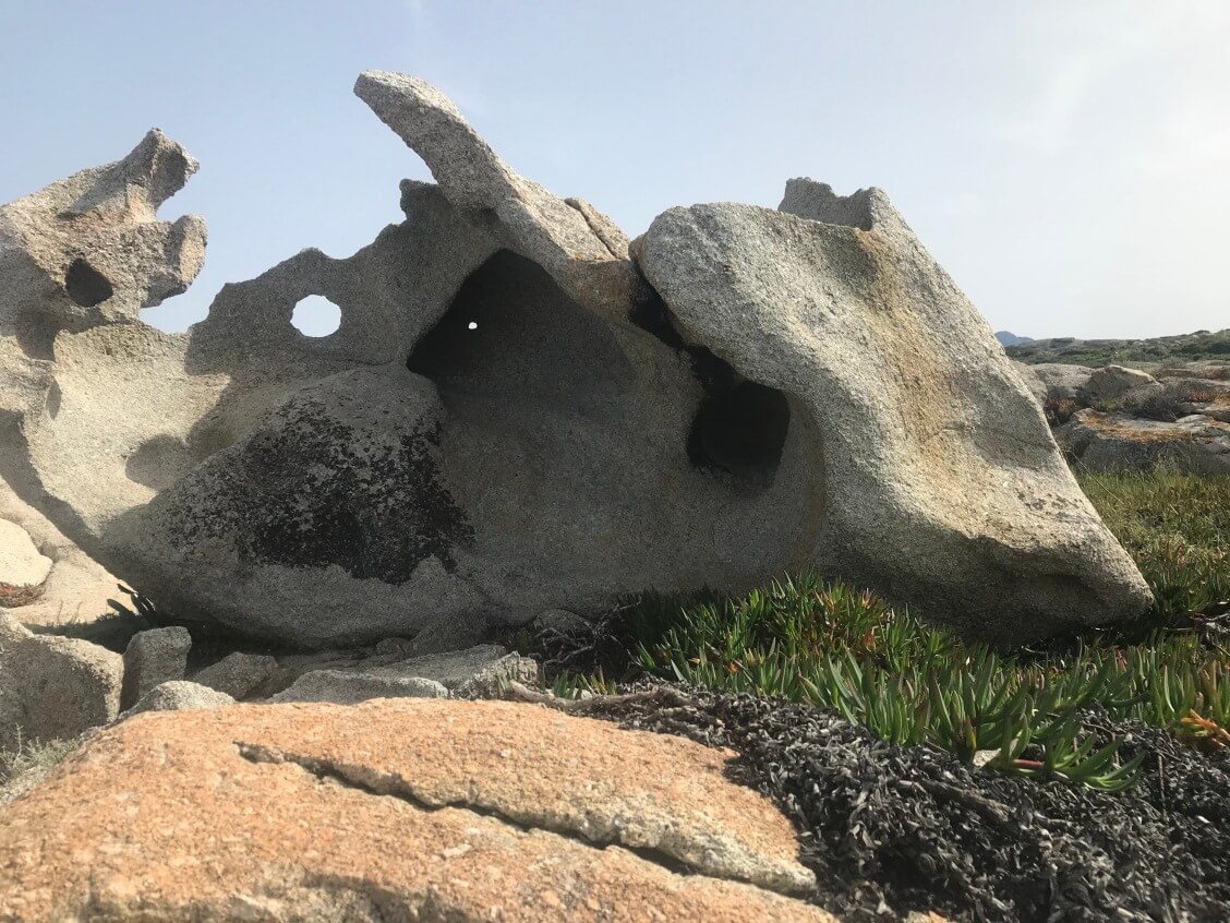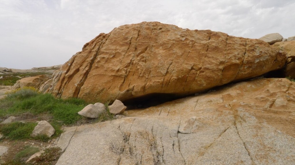 This was a bit of a walk from where we were staying along dusty, dirt roads to the headland to the west of us. According to Climbing Away it said that the bouldering was limited to where the car park was and the small watch tower, overlooking the sea. When we were walking along the roads, we found hundreds of boulders, untouched and unclimbed. With a bit of cleaning and some maintenance they would be perfect. A number of these were shaped like odd things too.
