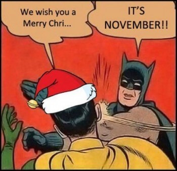 Sure I get that it does take some prior planning to buy presents, to get the right turkey (or tofurkey) and how to get Aunt Mavis from the station the day before, but does it really have to all planned in Spring? or even in Summer? Can’t we get through Halloween and then move on to the next Holiday?