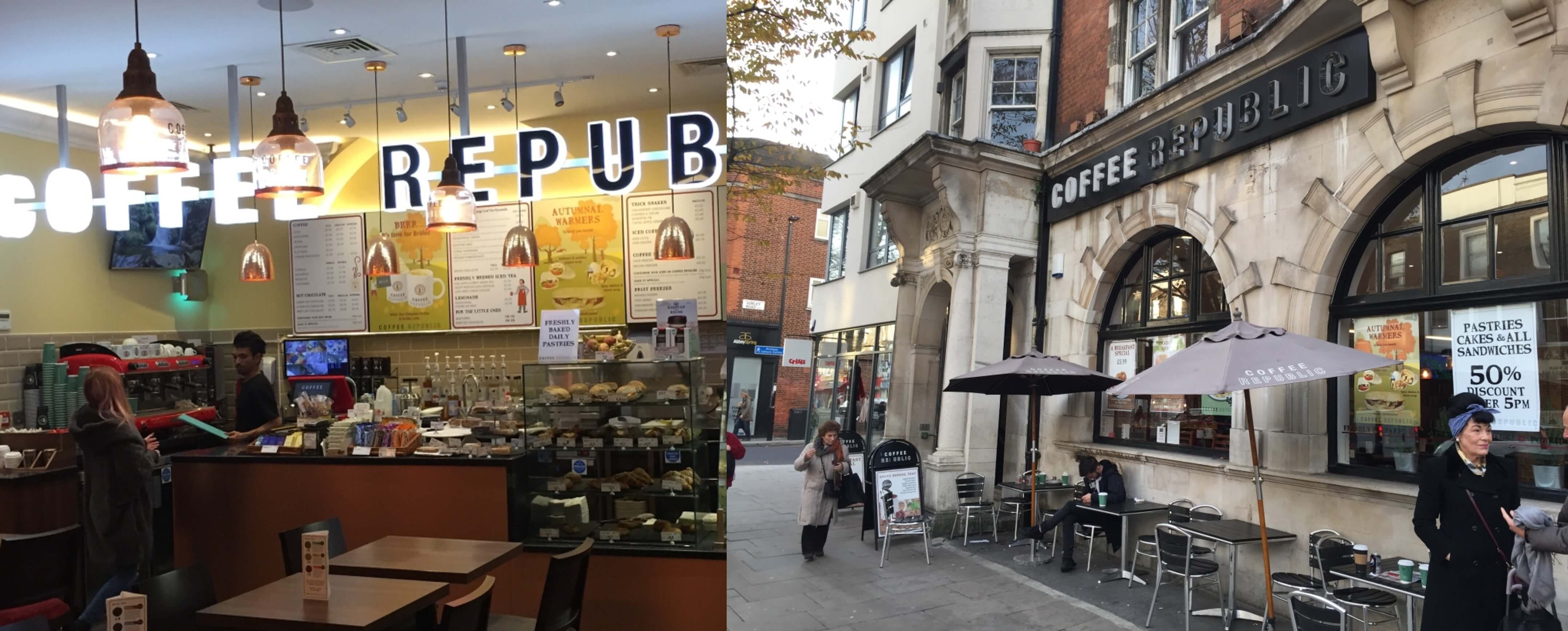 We did threaten to go into Bread & Bean across the road from Coffee Republic but then we saw the cups, the tiny tiny cups and the prices and thought better of it.