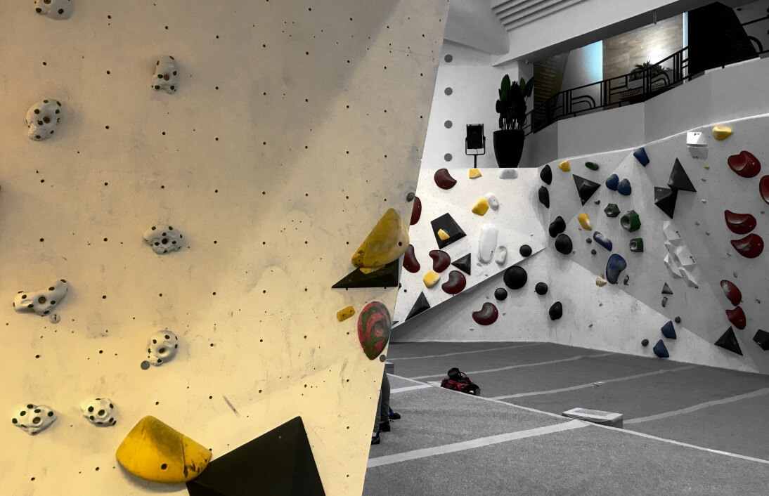 The original features are very prominent, wrought iron railings, balconies and Art Deco wall designs still remain and the walls are built around these, the design is interesting and clever in the overhand alcoves and tiers of walls, but there is a real lack of actual walls to climb, every section is interrupted by these balconies, sconces and stairwells, walls can’t flow because the mats can’t lay deep enough because of the railings curving inwards over the stairs from the lower floors.