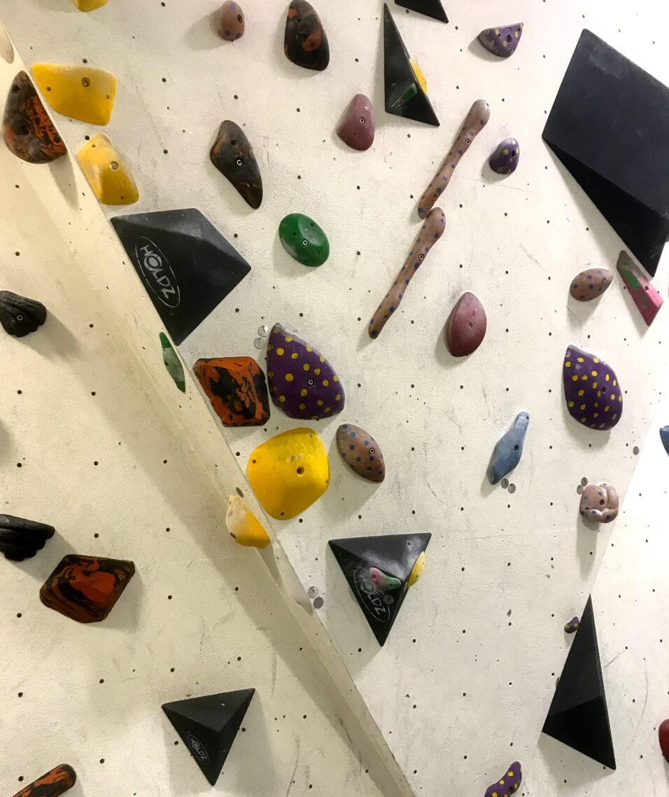 The changing rooms are fine, well appointed on the first floor by the café and the sparse shop. But then you have to go back down to behind reception with all your stuff to get to the lockers, the usual not big enough to fit a rucksack in, kind, unless that is, you have your own Bob whose superpower is the ability to fit a mid sized human in a milk carton! We started with a little climb around the warm-up ice cube (appropriate!), in the first area, a circuit traverse wall. Ash loves a traverse wall, so this made him happy and we felt an extensive warm up wasn’t going to work given the temperature.