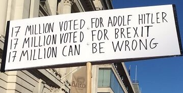 Unfortunately when the votes were counted we had been condemned. Yes I understand that 17 million voted for Brexit but as the sign says above people can be wrong. Not only were they wrong but many people feel like they were duped, so many of those promises that were put forward were immediately withdrawn.