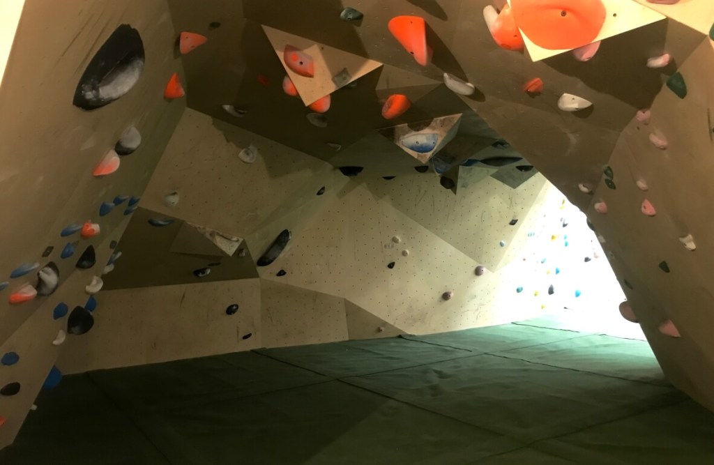 Other features of the space is a large open cave area, there is a sign saying a new traverse wall is due and again it looks like a big space for it. The Top Out Boulder is good too, most walls now don’t want you climbing over the top, so when you get outside for the first time, you will never know the ‘Beached Whale’ or ‘Walrus’ technique needed to finish the route, But Yonder has you sorted and your rewards for your inelegant thruxing over the top, you get – yes – the slide!