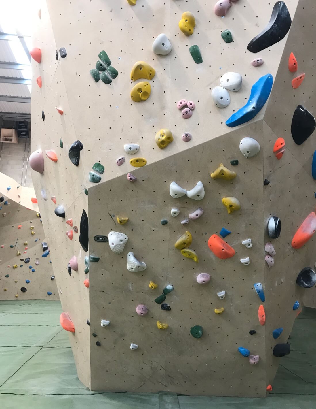 Ash: I like the fact they used the wall’s angles as a feature rather than just sticking a big easy jug route on the overhang for the V1 climbers and then filling the rest with V6-10, The V1 was just as interesting and well thought out as the V5, that I tried (and failed). Most walls do that, stick a really big ladder route on the hard wall, to ‘cater’ for the lower grades when they really want to make it for the hard routes.
