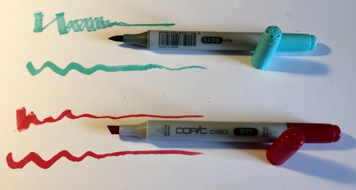The Chisel Tips do however match up and may even be slightly better, because they lay down ink more fluidly than the hard chisel tip of the Copic