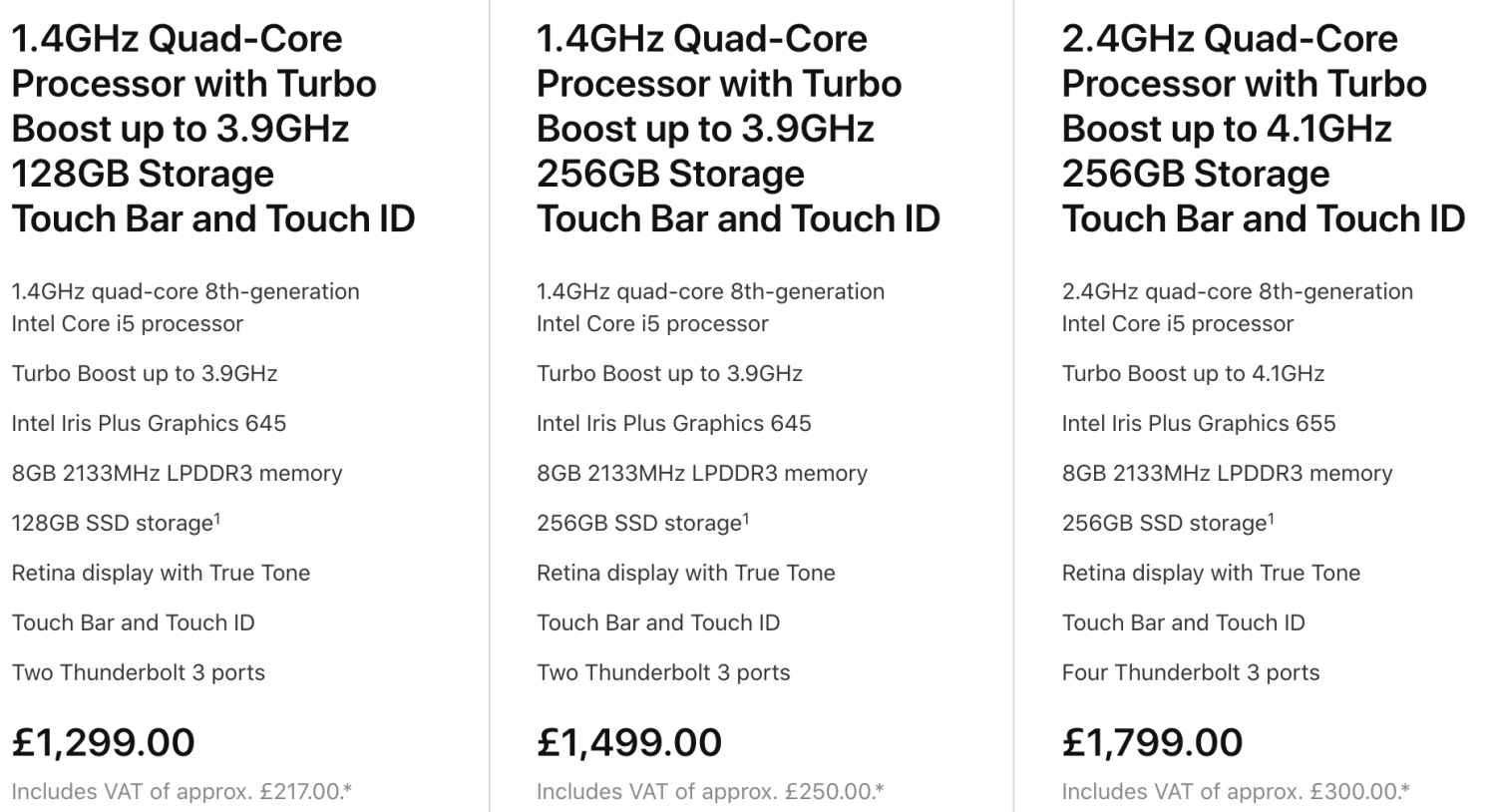 I know that I need a 256GB ( I would have gone for a larger memory except for the cost) as I have always been close to filling the 2014 model, which is also 256GB, so that was a no brainer. I didn’t end up going for any of the extras partially because I think £1,499 is more than enough money to spend. So what did I find out?