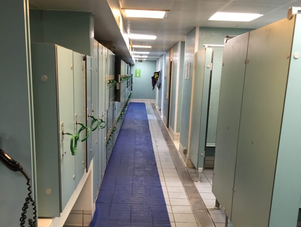 The men’s changing rooms are well appointed with ample lockers of all shapes and sizes, some you fit a paddle in or an annoying school child maybe! I walked in and in my bare feet slipped over, crashing on the wet floor and creaking my knee – it seems those ghost are still playing the same old tricks, even in their new home! So I am not a fan of the shoe policy and it seems that some of the patrons don’t take notice of the request a number of men in the changing area had some strange habits, two of them spread out their belongings across the mirror area, leaving all their clothes and stuff out while they pranced about, shouting and making a nuisance of themselves, while a number of men wandered up and down the long corridor between the lockers and the changing rooms and showers, completely naked seemingly with no intention of getting dressed or going to swim.