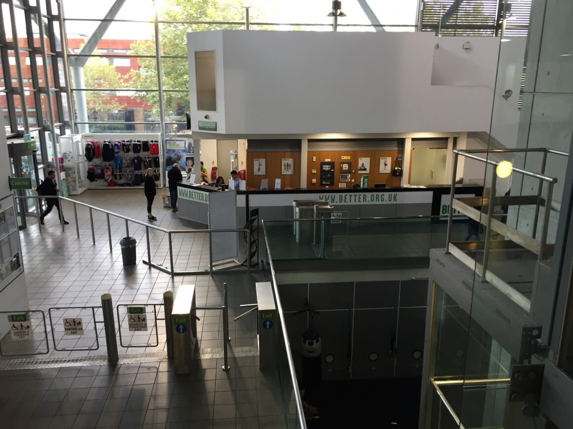 So what did we find? Well first impressions were of a sleek, modern building, seemingly much improved from anything that was there before, a large open entrance with the sound of school kids screaming and runner on treadmills, although the kids were visible the joggers were not. The reception was a bit of a problem, the automatic doors in the entrance we out of order and so we had to enter via the exit and climb under a barrier to get to the reception, I’d wonder how some of the less able bodied patrons managed that exercise!