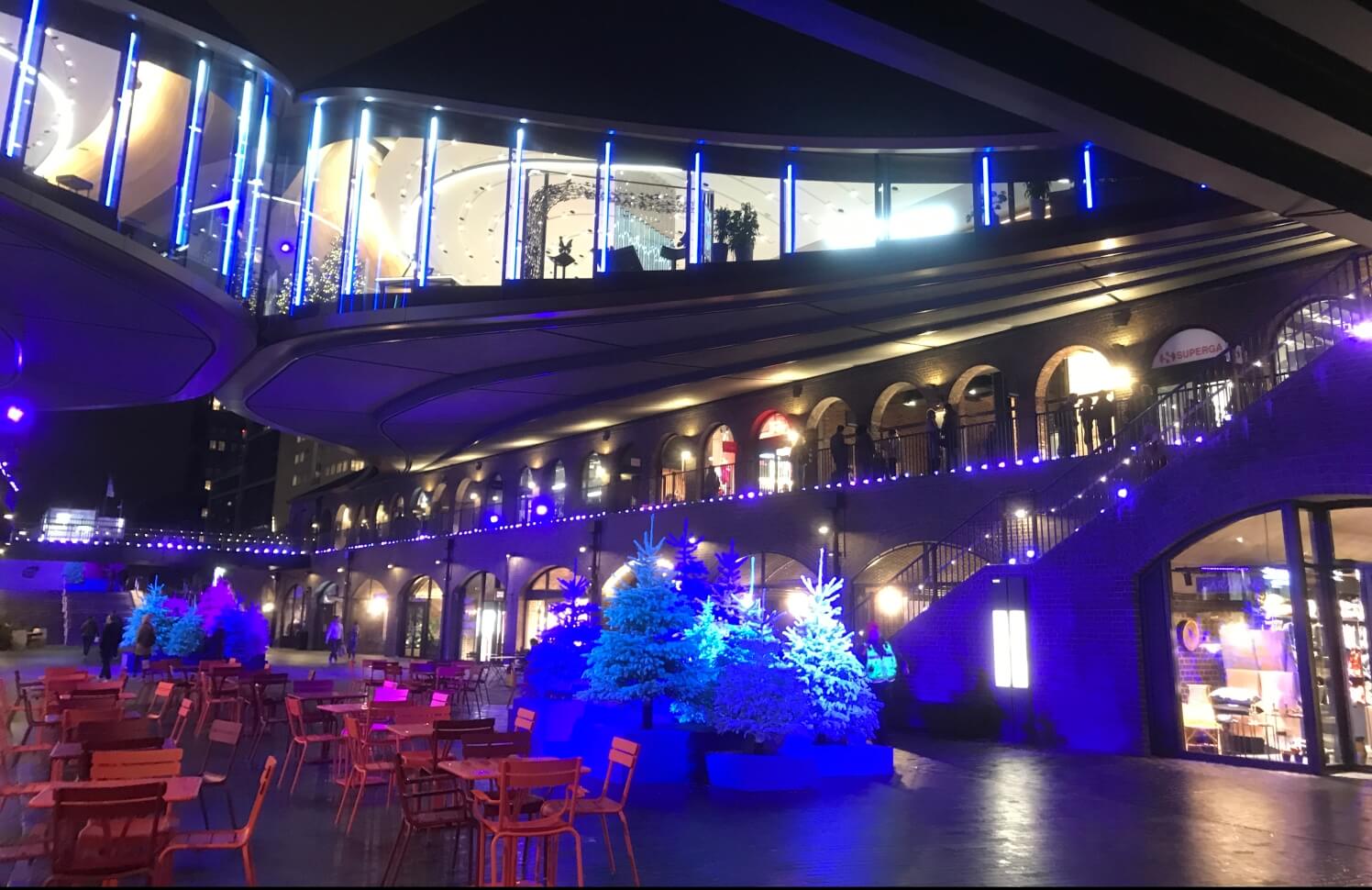 The Samsung building in the new complex behind King’s Cross and St. Pancras is a pleasant place, built out of the old Dingwall’s Building, where once raves and all nighter club took place, it is now a mass of more sophisticated High St stores, restaurants and showrooms for the TV’s etc and at the side of the massive screen is a coffee shop.