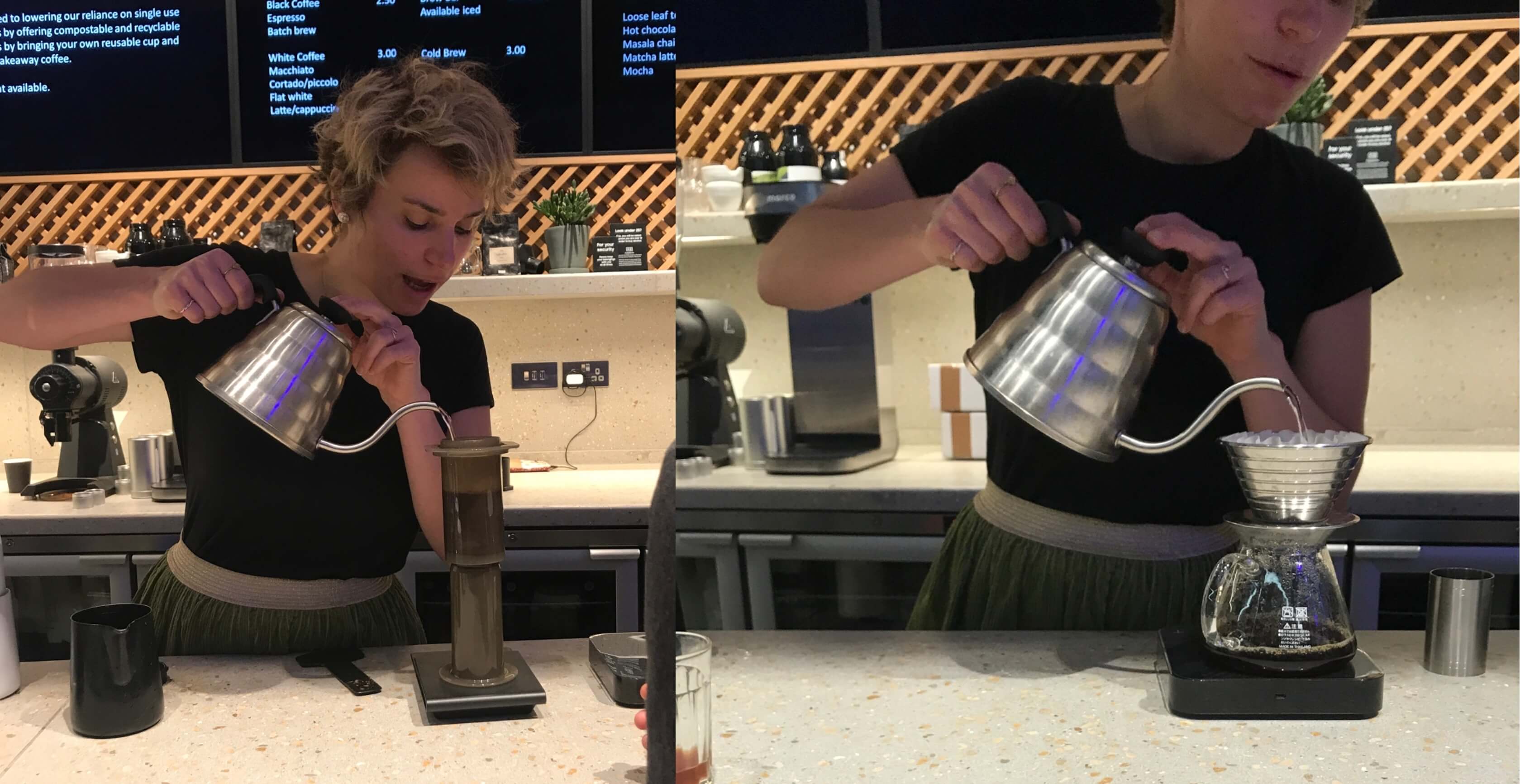 It was here that we joined a small group and listened to a woman talk about coffee and in particular the differences and the processes of using an Aorepress and a Cannula Pour Over to brew the drinks.