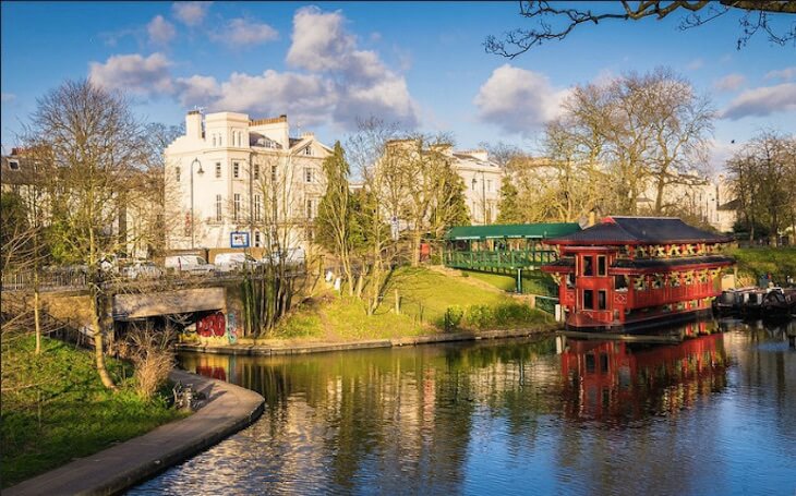 The Regent’s Canal is just 9miles long and starts at The Thames at the Limehouse Basin and goes North and then West past Mile End, Victoria, Shoreditch, Angel, King’s Cross Camden, Regent’s Park, St. John’s Wood, Paddington – Little Venice and then on North West out of the Capital. But it’s the London Sections we love.