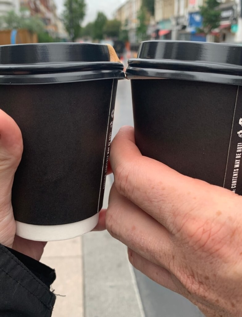 And we tried, we walked the 200 metres to the station, past the -until now – worst coffee shop in London and we really tried to drink it, we switched cups and Bob’s was slightly better and hotter than Ash’s, but we are talking Arsenic instead of Cyanide.