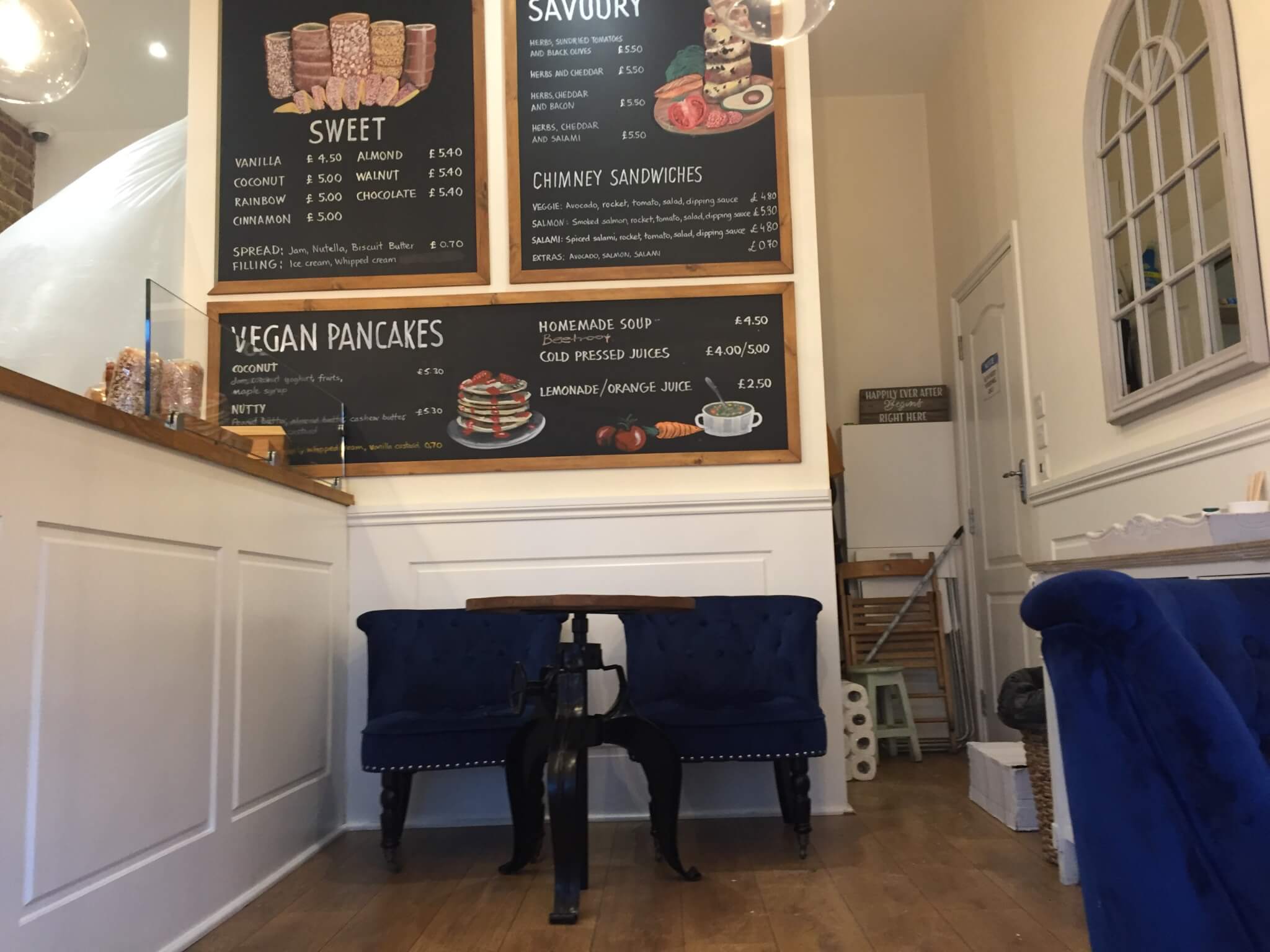 As we turned onto Churchfield Rd we spotted a quaint little shop that boasted Vegan Dishes and looked interesting so we figured we would try it.