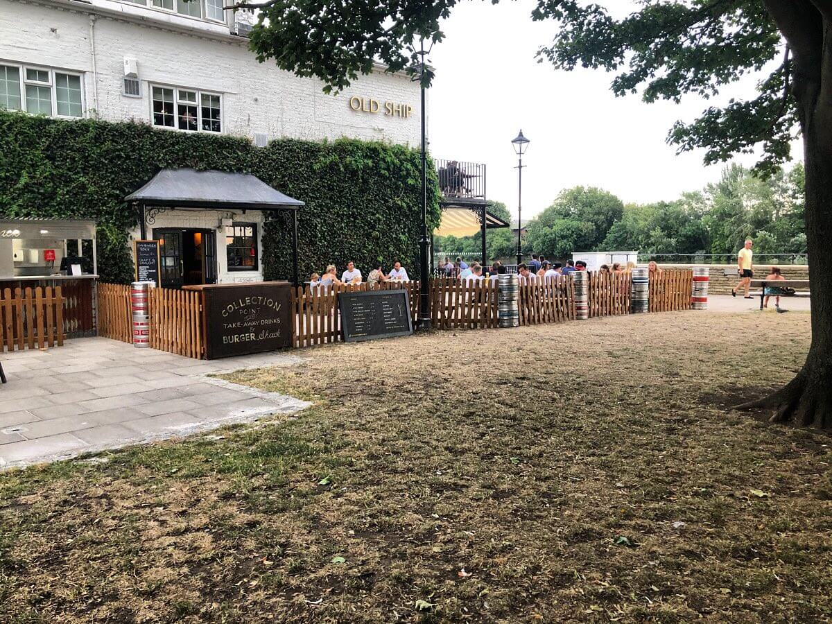 The entire pub was gutted of chairs and tables and we were lead out to the beer garden, which is cordoned off so you can’t just sit on the river wall or in the grass anymore, no it’s all very controlled.