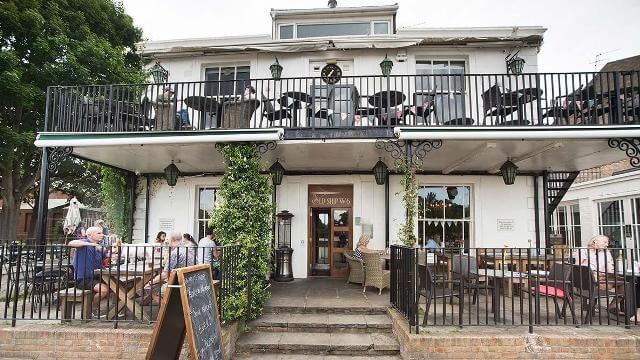 So one of our friends had a birthday last week and he booked a table at The Old Ship, in Hammersmith, on the banks of the Thames, a little west of the externally closed Hammersmith Bridge. Nice we thought, then we looked at the weather – cold, wet and with extra cold and wet for good fortune. It was the start of a Bank Holiday Weekend, so what would you expect?!