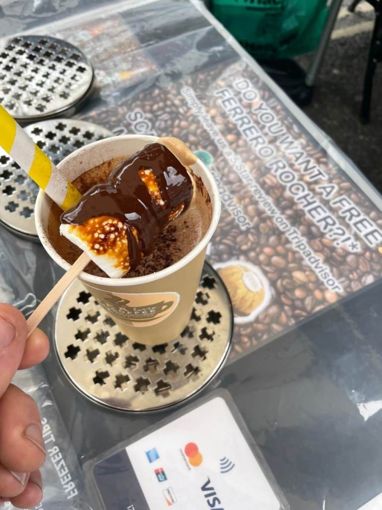 The order took a bit of time, probably not that long but it was so cold, it felt like hours! But the results were good, the marshmallows were a bit over the top but the rich chocolate really added to the drink and the coffee was pretty good, it was also hot too!