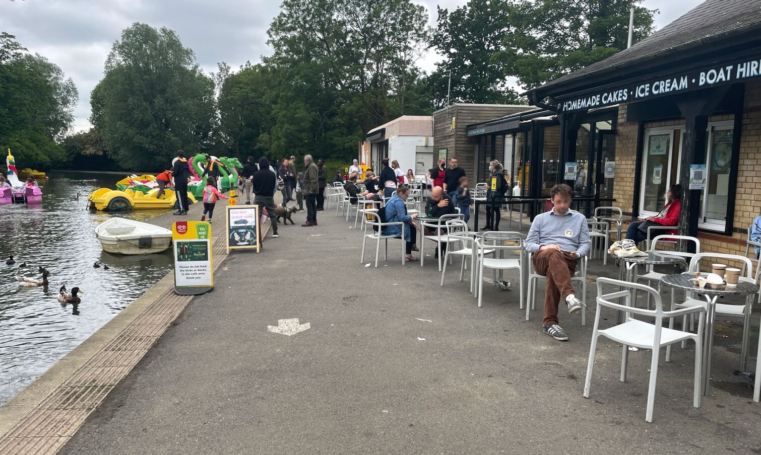 At the top of the really steep hill in North London there is The Alexandra Palace and just beyond is the Lake, where you can hire Peddelos and feed the ducks, there is also a Café that we tried.