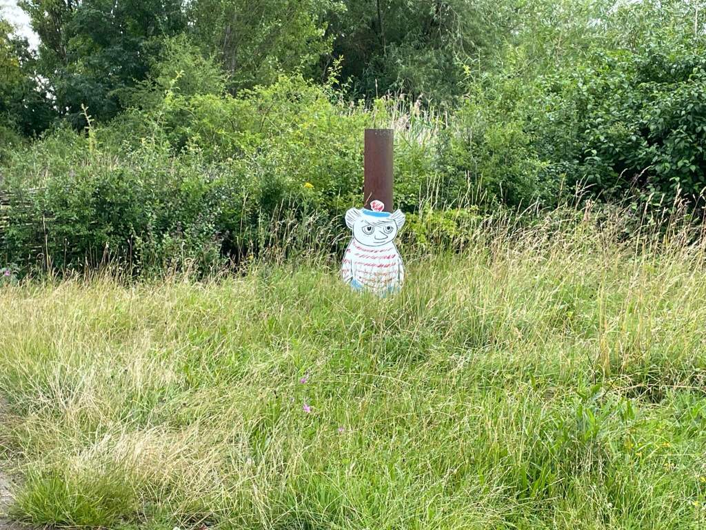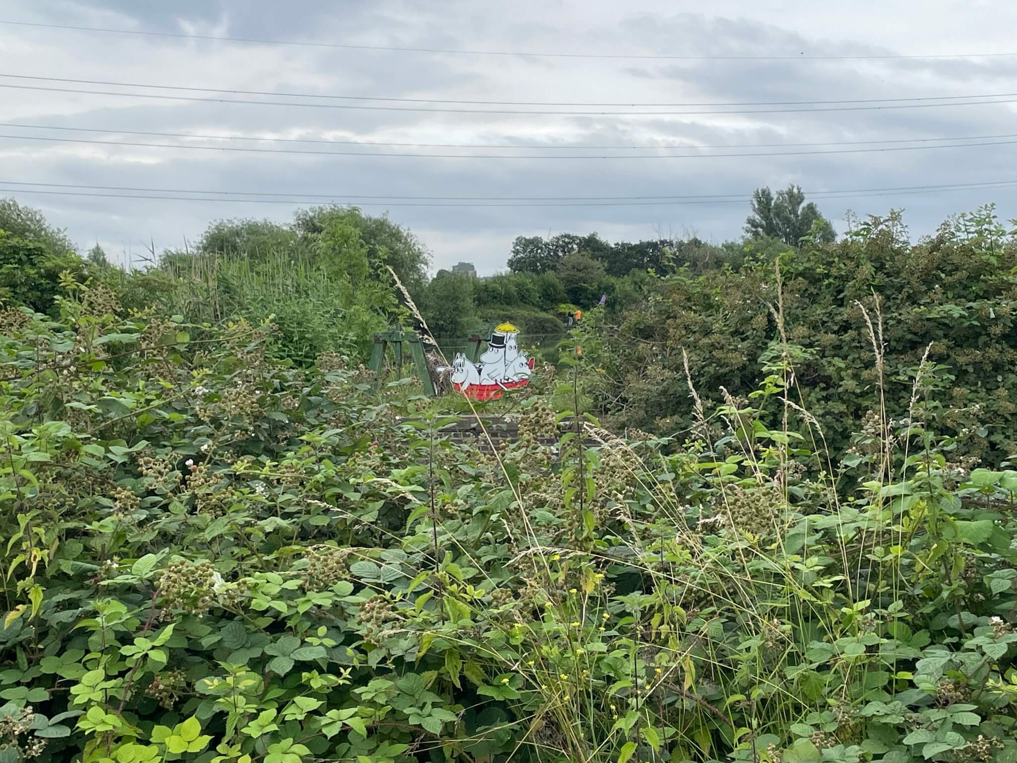 Before you wonder why we didn’t get any closer – all of these areas are cordoned off for wild flowers or in the case of one big section of the trail – indicated by the red bird. Is closed completely for the whole summer due to breeding of the local wildlife. We really do wonder why you put put some of the exhibition in a section that no one can view or get to, given that this breeding ground was in place long before this exhibit had been installed. So much so there is a gate and a sign warning of such – why would you use this section? You can see the beginning of the missing Moomins just behind the gate which is closed for the public.