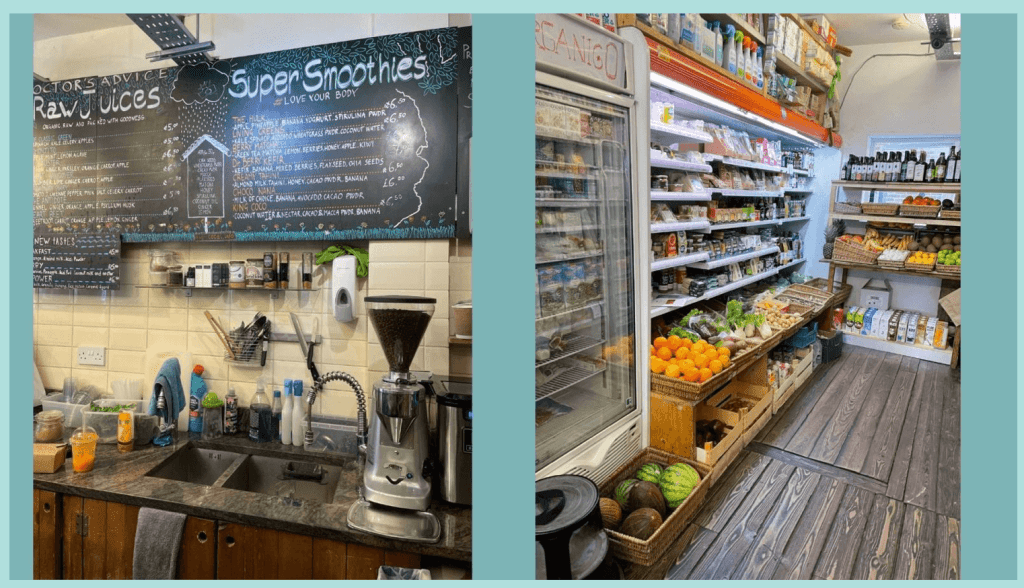 Sat right beneath the Silverlink Station – Kentish Town West – there is this small shop. It’s fully vegan and ethically sourced. They had a huge selection of Wines and even plants for sale, but we settled for 2 Iced Vegan Mochas.
