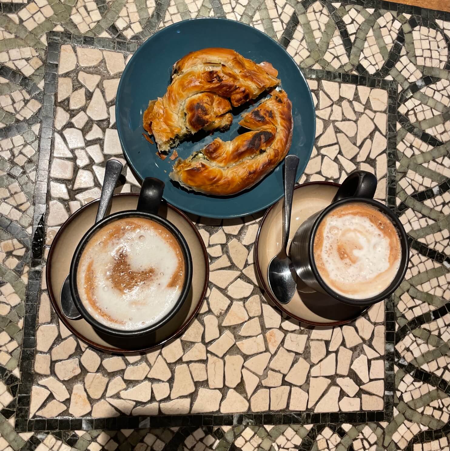 We were looking around Stoke Newington the other day to see if we could go to somewhere new – as we seem to have gone everywhere by now. We found Camia and took a seat – we ordered the usual 2 Mochas and a spinach pastry and sat in the back.