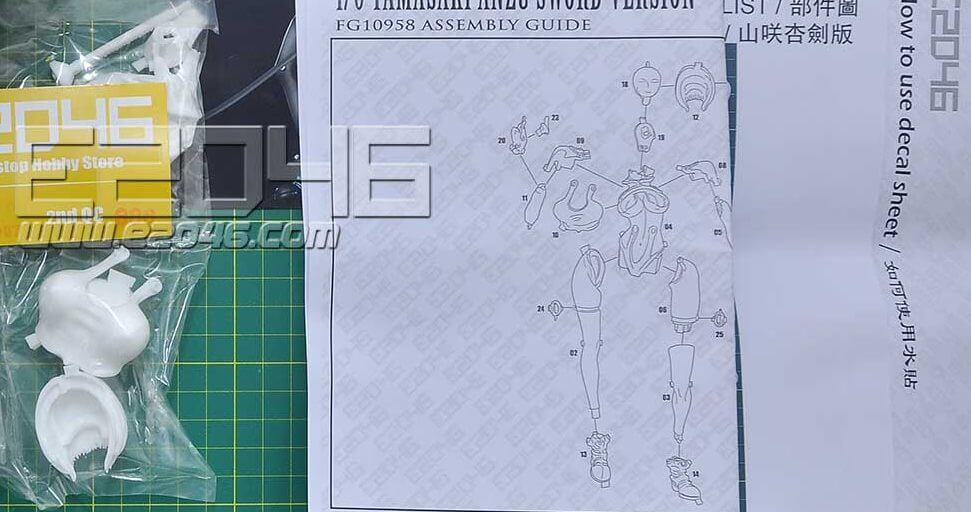 Well when you order you see photos of the contents and you can see how many pieces their are and everything else in the yellow box. What isn’t clear is that sometimes there are no instructions and when there are instructions well sometimes you might be better off without them! There is usually a photo of all the pieces and a number attached, then if there is a diagram for assembly you need the number to match to the diagram, the problem is, that the photos of the individual pieces seems to a challenge, you see the number 58 is a piece of PVC, it looks like a straight stick, but is in fact a curve bit of hair, they have just photographed it at the most unhelpful angle they could find. You have to really study the photo for any clue as to which of the 80 pieces in the box number 58 could be and then 58 will need to fix into 25 and that is equally difficult to spot and the diagram just indicates that these pieces join to that piece over there, somewhere near the body, but it could be in front, behind, facing forward or twisted round, their really isn’t any details given and you think i’d be better off with no instructions, then you get the 2b Model and it has no instructions and you realise even bad instructions are better than nothing. In the end the 2b model wasn’t that difficult to construct, it just would have helped to know to put the sword in her hand before gluing the arm to the torso, I didn’t and had to saw the sword in half in order to fit it in her hand. The Yae sitting in the tree was much more problematic even with instructions and it took both Bob and I using all hands and our mouths to fit the hair to the head, because we put the head on the body first.