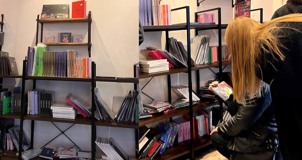 The shelves are splattered with albums of different generations, different genres and of different sizes and shapes, it’s chaotic. There doesn’t seem to be any rhyme or reason as to where anything goes? 2 of the Tomorrow by Together albums was crammed next to 1 MAMAMOO album which in turn was jammed next to 2 of Itzy albums and all of the Dawn/Hyuna albums which weren’t stacked, just placed on the shelf flat. Because of this it was next to impossible to work out/find what group you were looking for let alone which album was where. I’m not sure if this was because of the time of day and people messing it up or wether this is the way of the shop.