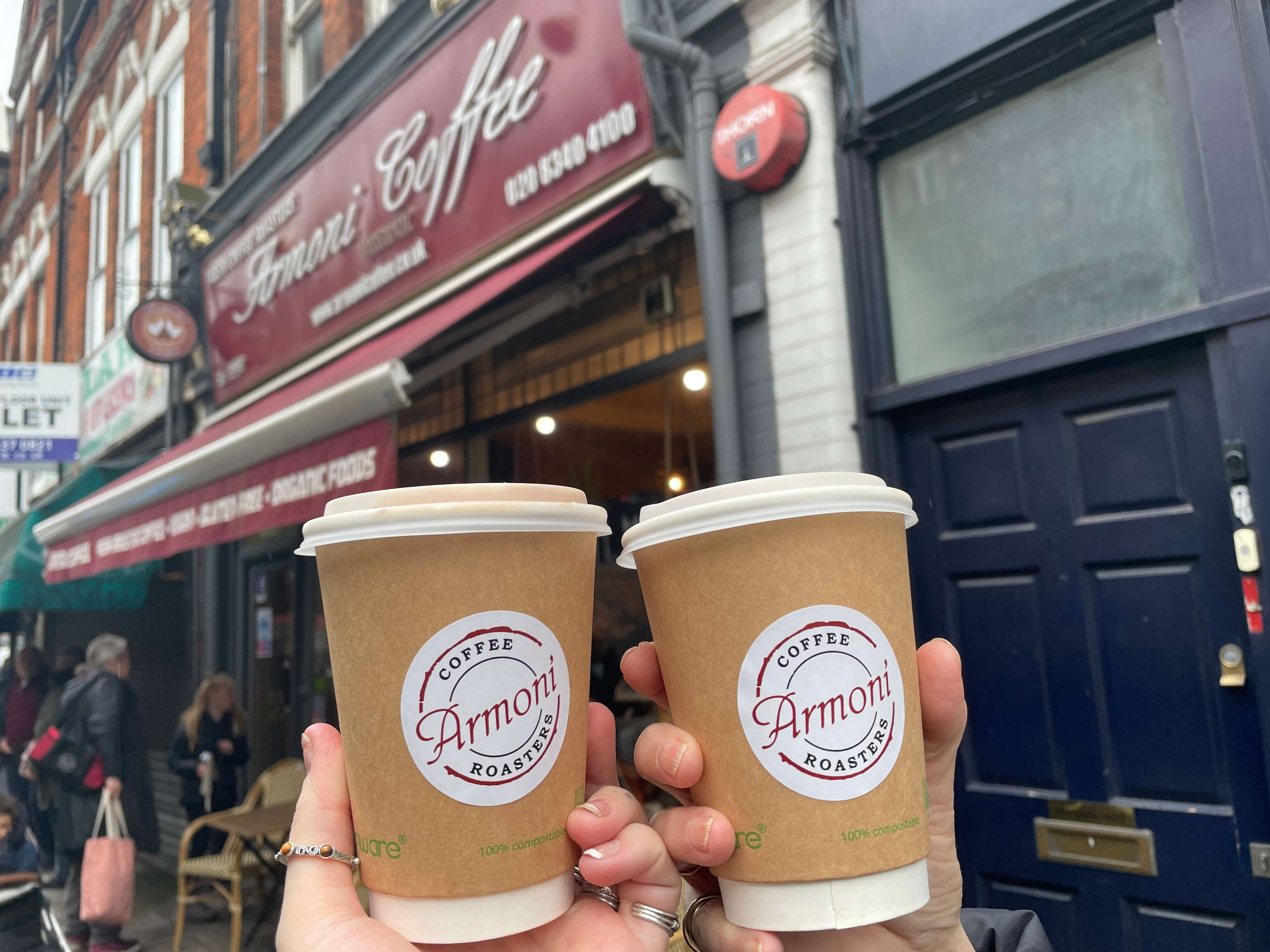 Another part of London we rarely get to, but Crouch End is full of little Coffee Shops (mostly indie) as well as the influx of Costa’s. We instead opted for Armoni Coffee, headed in and ordered 2x Oat Mochas.