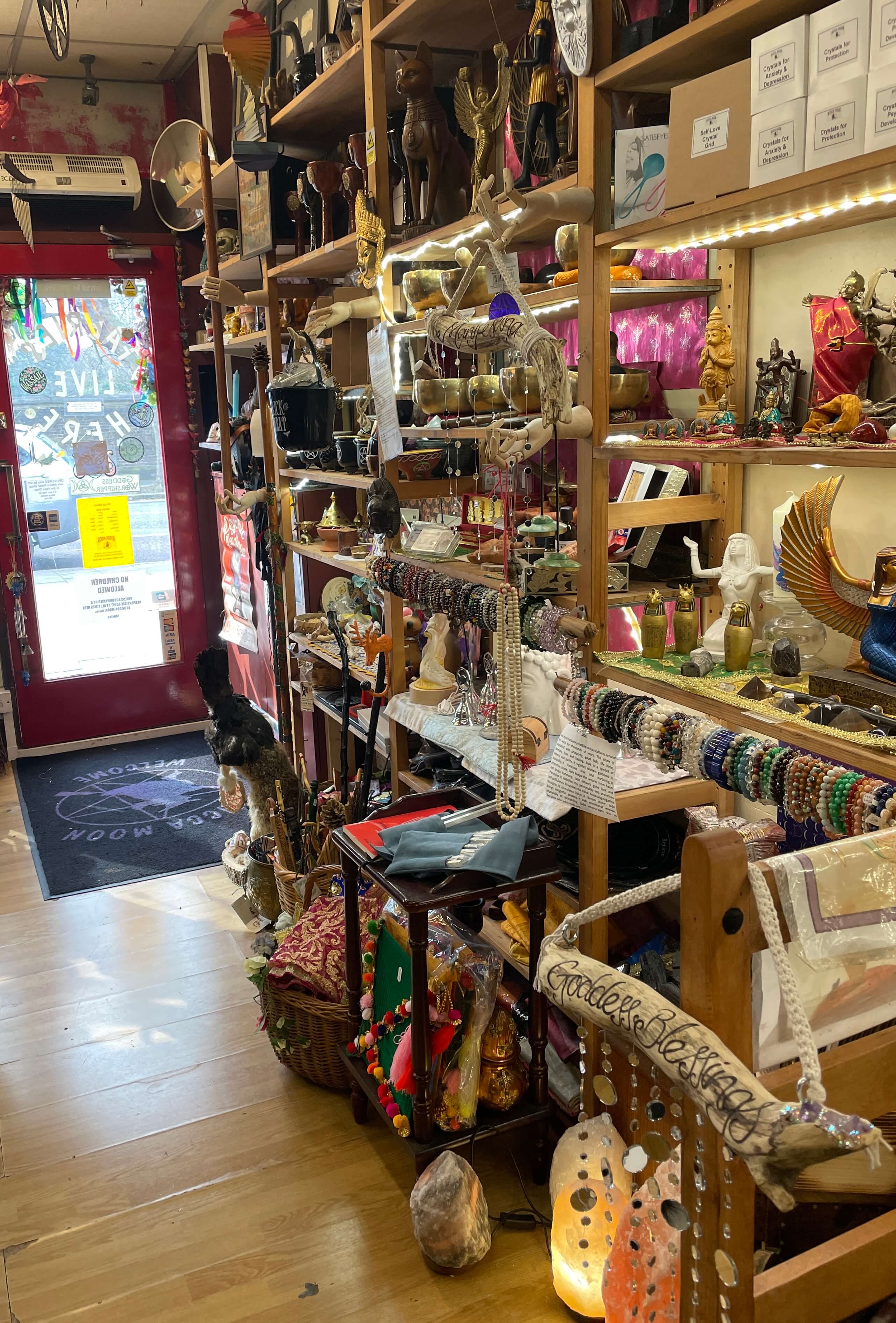 Wicca Moon is a treasure trove of crystals, tarot cards, prayer bowls and everything you would expect from a (for lack of a better word) New Age Shop. Now the thing with these ‘Mystic shops’ is you always get the feeling of ‘If you need to ask, then you’re in the wrong place’. But from the moment we entered the ladies were there to help as well as talk to the dog – actually asking how old she was and where she had been today – not us, the dog! She’s pretty shy and didn’t speak up, so we answered on her behalf.