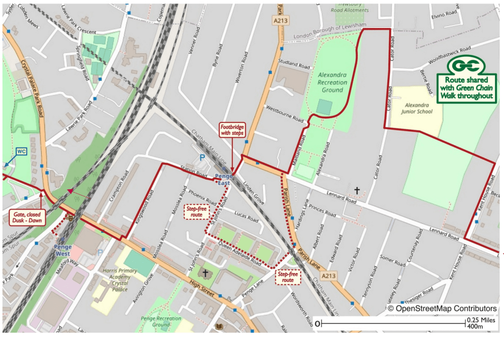 After this it is a short walk to Penge East station and over, then weave towards Crystal Palace Park, where you can choose to go north around the park, or south to see the dinosaur statues.