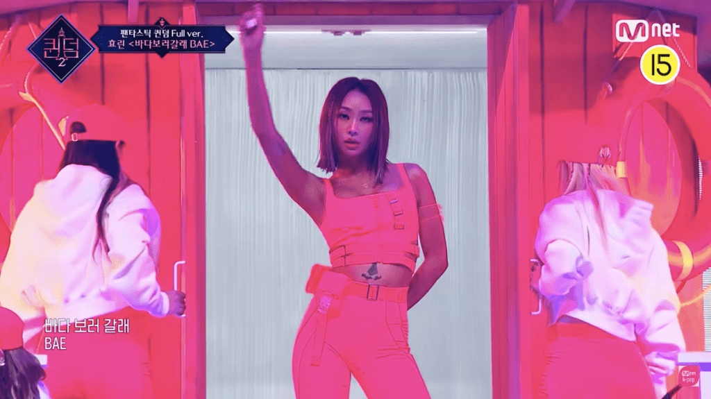 WJSN’s Exy was shown to have not slept or stopped in preparation for the the performance of Aura. MNet’s baby was proven to be a martyr for the cause. The performance well for 1 they started off with the drones and lighting show again, like in the previous week.