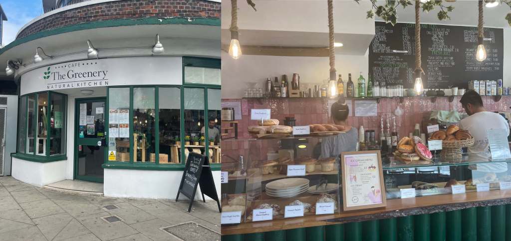 Wood Green/Turnpike Lane is one of those places where the coffee has been really hit or miss so we are always a little trepidatious when trying shops out. However we had seen this shop/restaurant with the vegan options sign and smoothies so we decided to take a chance. We are glad we did! Inside it is huge, with an entrance on either end a large open seating area, lots of tables matching everything. Flowers on the tables – of course the obligatory neon sign on a grass wall. The staff are really nice and we have been back a number of times since our first try so that really shows what we think.