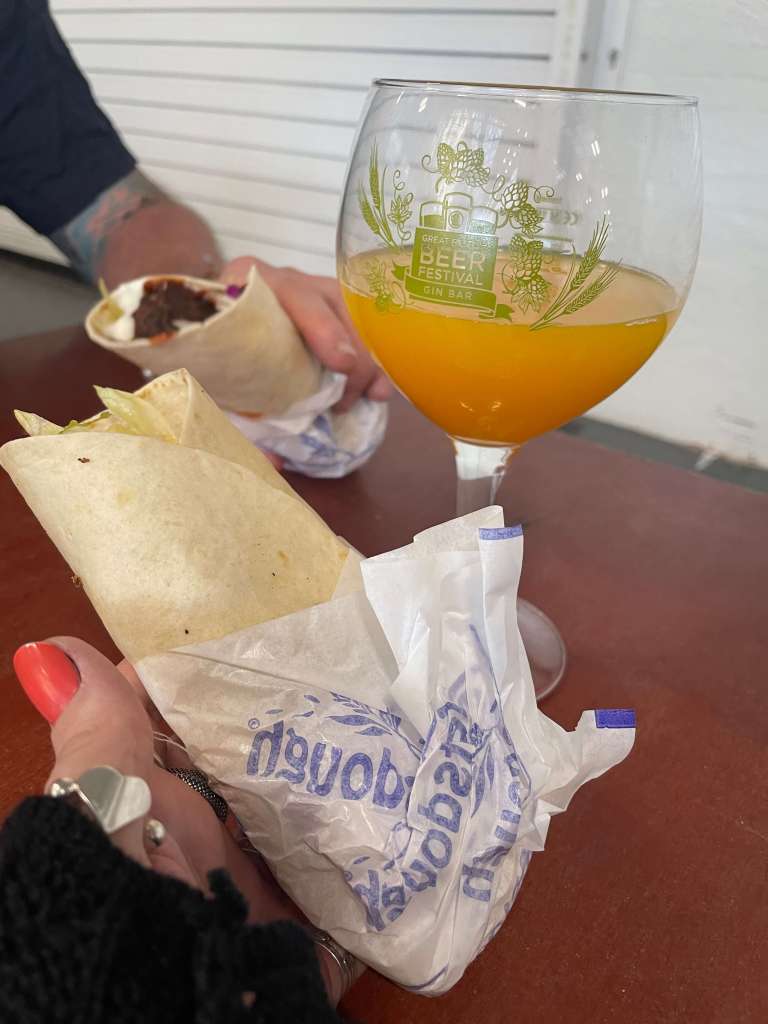 Well that’s the beer, there was also a fair selection of foods on offer and most had a veggie/vegan option – which is more than the recently visited Vegan Market – but that said, the prices were extortionately over priced, £10 for a small Falafel or Halloumi Wrap, (when we say small we mean 3 pieces of halloumi). We should have just filled ourselves up with Cornish Pasties instead, at £5 they were more filling and nicer too.