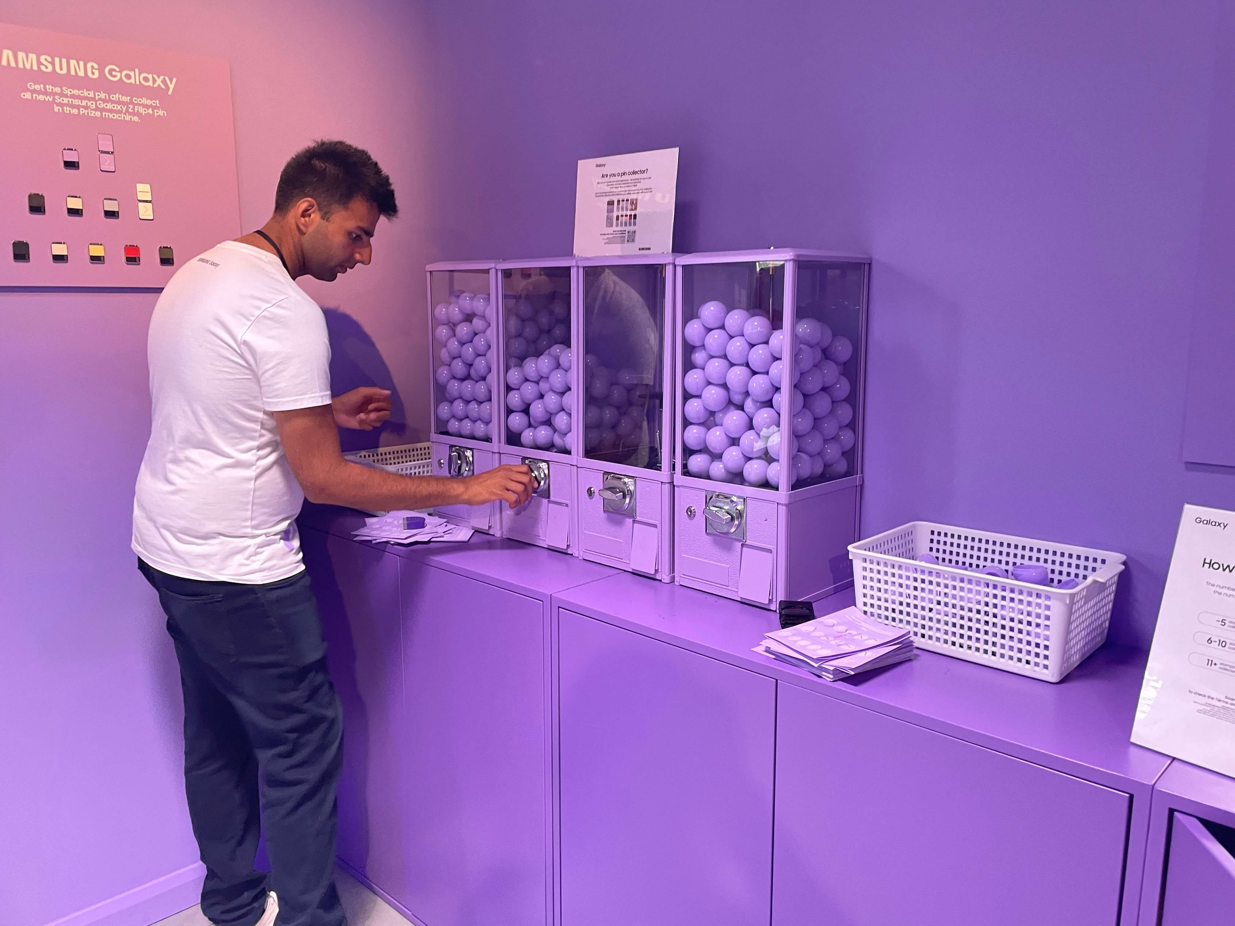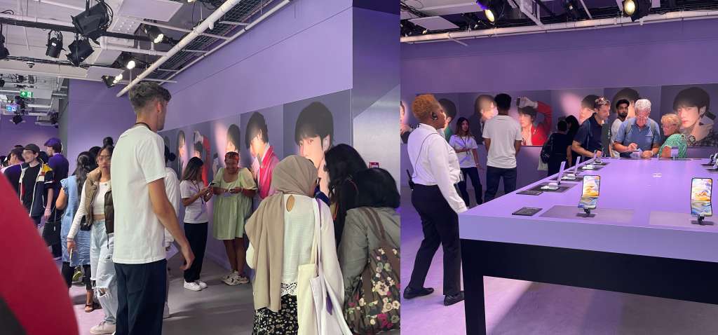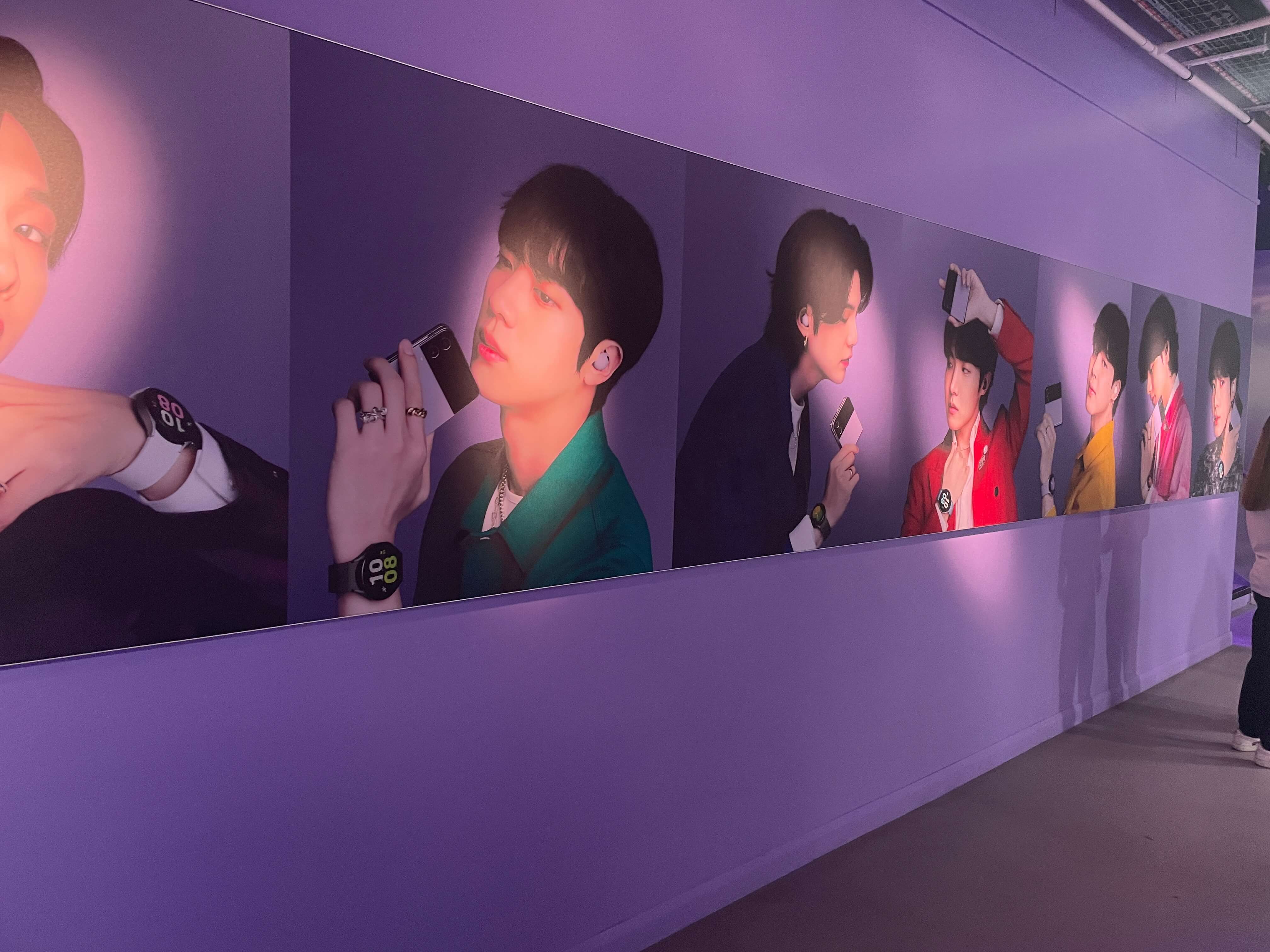 You enter the building which is predominantly decorated in light purple, with large screens showing BTS music videos all filmed on the Samsung, Photos of the members holding the phones and tons of staff meandering around waiting to point you in the right directions and try and sell you a phone or some other kind of tech.