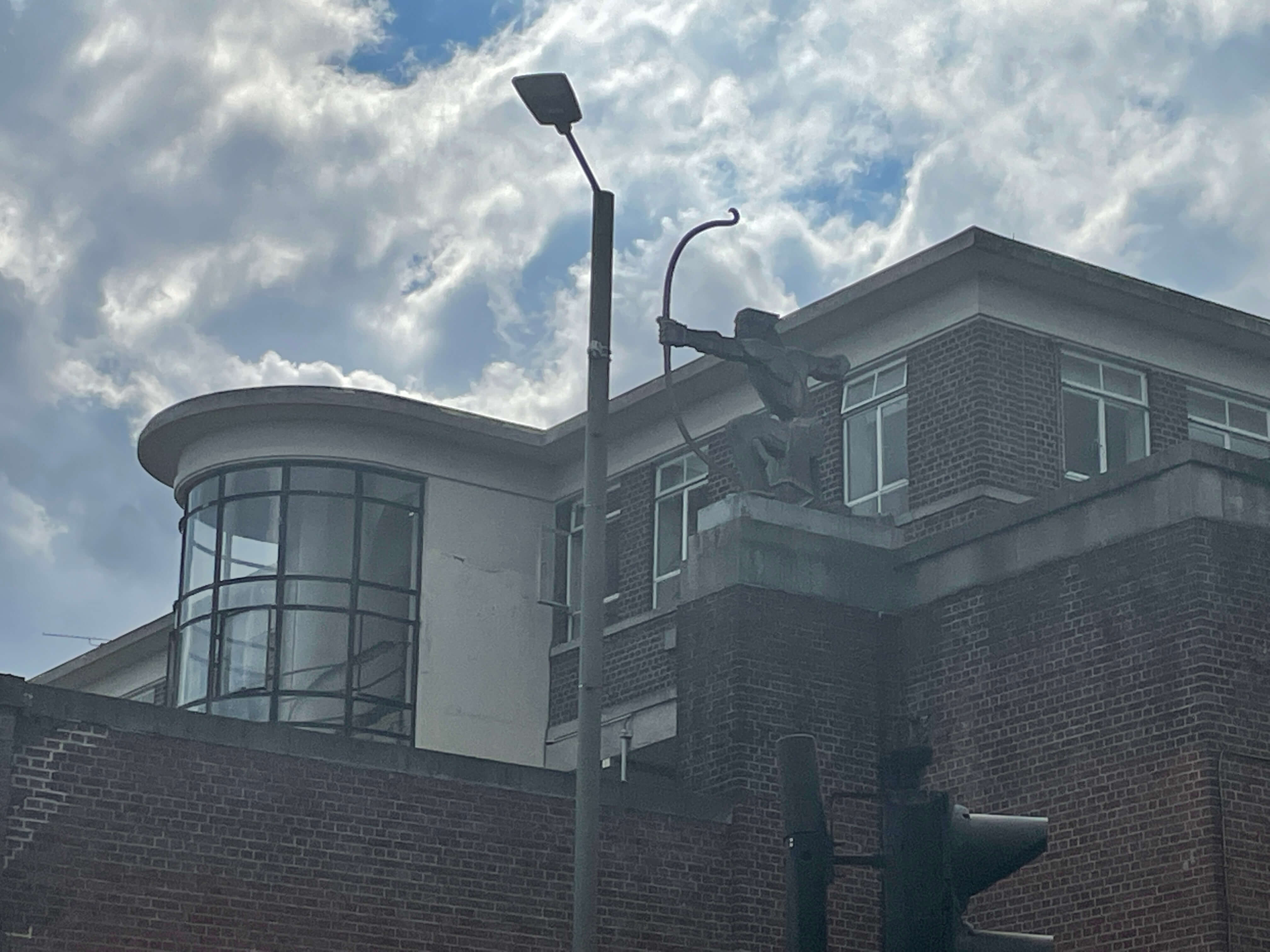 After a hurried pint, we resumed our walk after observing the statue of an Art-Deco Archer on the Station’s bridge (Why is this mentioned in the guide?) and headed into Cherry Tree Wood, where we met a friendly squirrel and a number of dogs. The park is rather nice and one to return to at some point, but that day we just carried on out the other side along roads and on towards Highgate Woods. Which we got to via more residential roads.