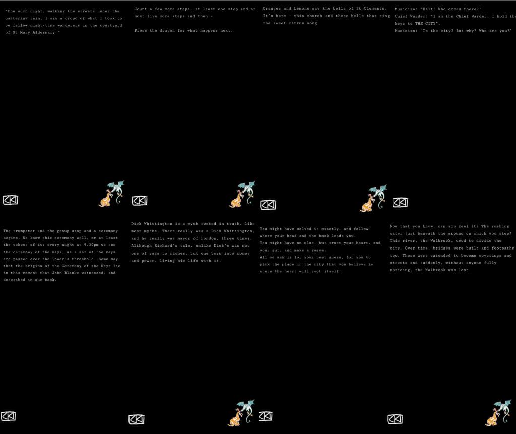There was a word on a sign in between columns (Serendipity) we texted that and then the clues waffled on about Dick Whittington and stories etc.