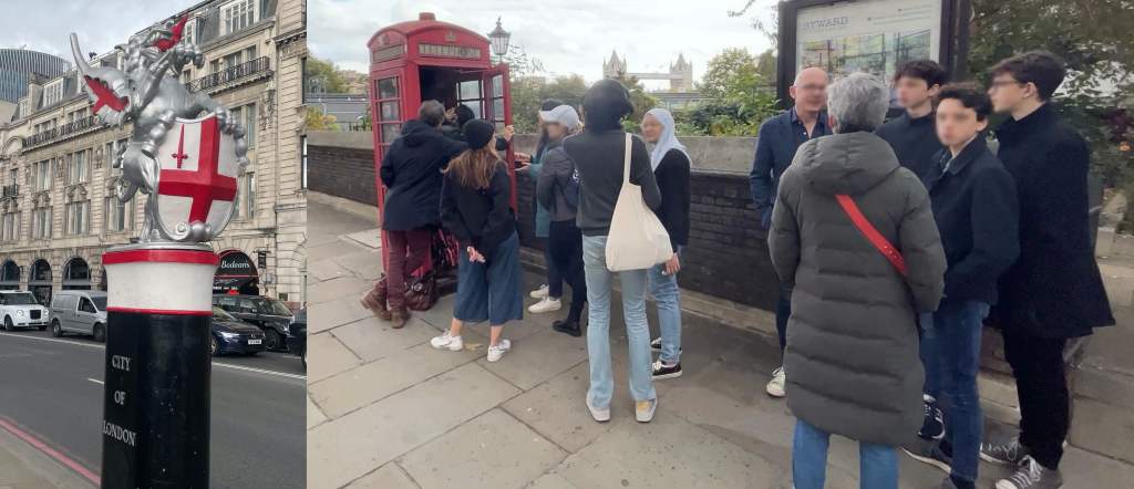 Onwards we went to All Hallows next to the Tower Church with a Shielded Dragon guarding a Red Phone Box. There was a huge queue as with all things British (foreshadowing) so instead we texted ‘Engaged’ So our phone rang and a voice told us to find a clock – slightly after that we were texted a picture and a postcode.