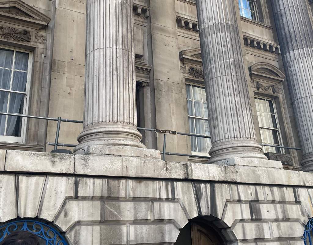 This lead us to the old House of Fraser building on the north side of London Bridge. This is where the clues went really peculiar and started going on about meeting friends ‘Serendipitously’ and ‘Marking a spot’